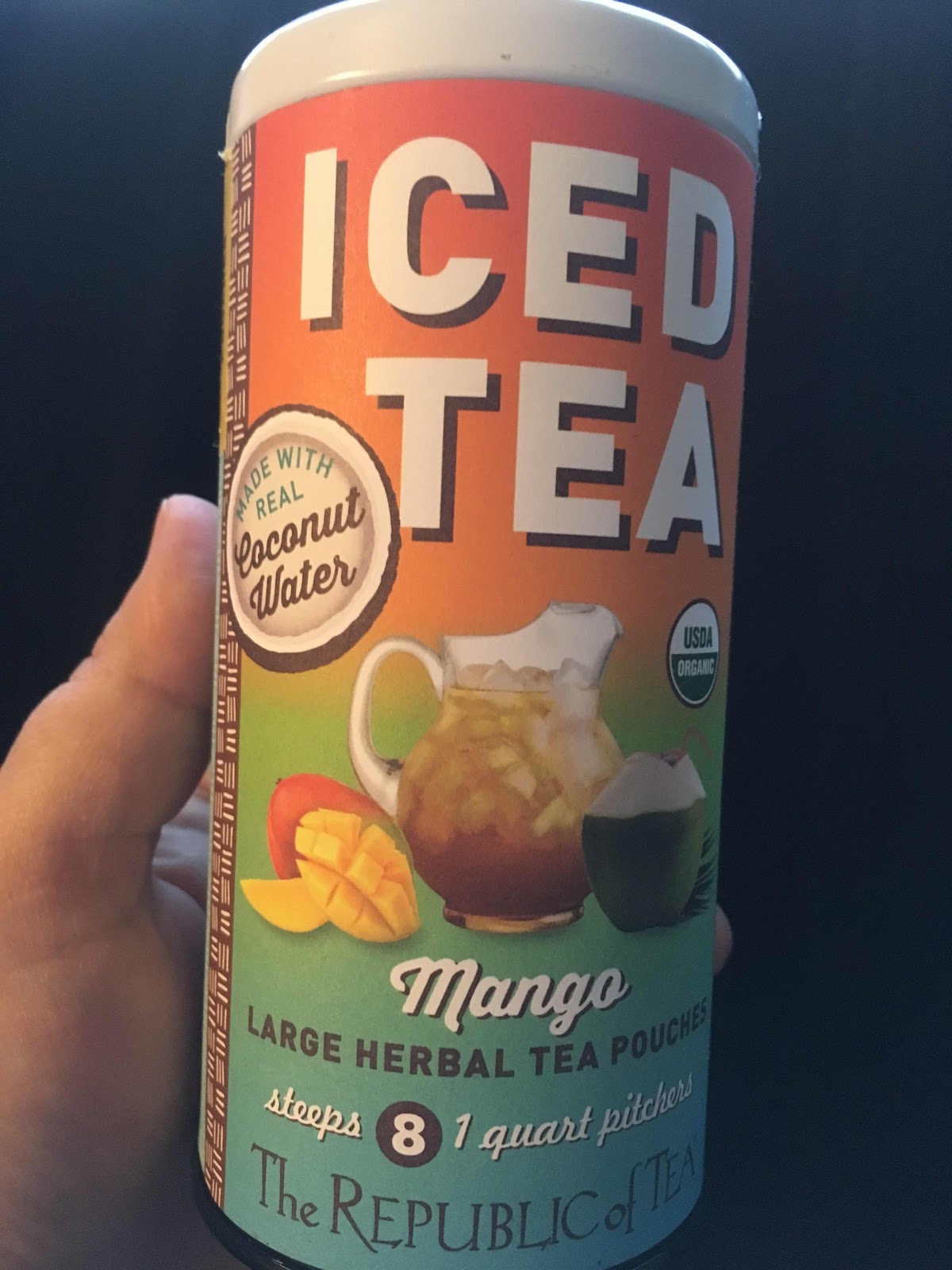 I love this iced tea. And I am amazed how they got the coconut water in there!! I guess they have coconut water crystals in it, but still I am amazed when I use regular water how the tea tastes like coconut water. The iced tea also has a nice mango flavor.