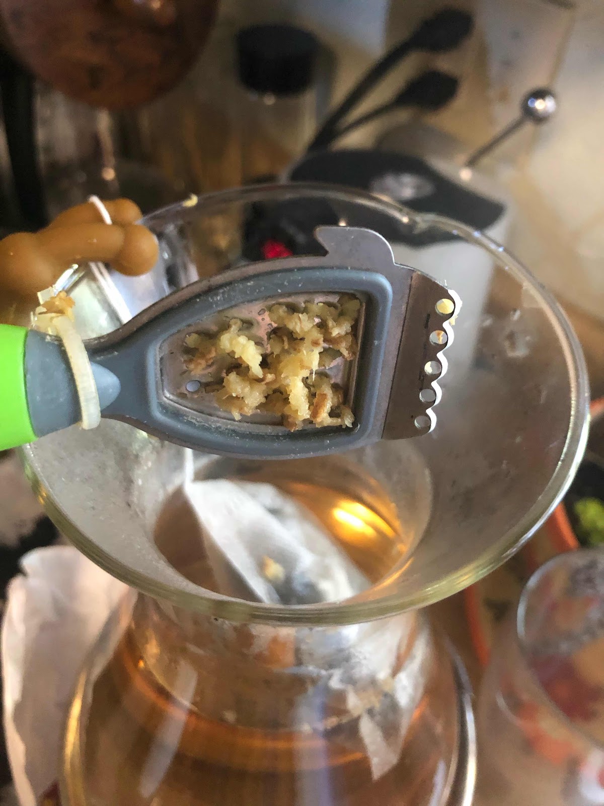I grated fresh ginger right into the tea while it was steeping.