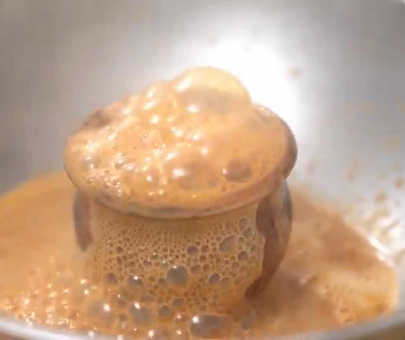 Pune, Maharashtra Tandoori chai, It is traditionally made by warming the kulhad (clay mugs) in a tandoor until they are red hot and then pouring the Masala chai in them, hence the name Tandoori Chai. The tea froth vigorously like a volcano once poured into the hot kulhad and gets infused with the Smokey flavor.